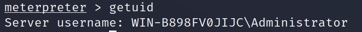 发下我们获取的管理员的权限,因为是管理员执行的我们的木马。如果是一个低权限用户执行的我们的木马,那么我们的获取的会话也是低权限的用户